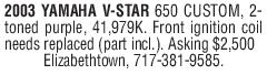 2003 YAMAHA V-STAR 650 CUSTOM, 2-ton