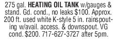 275 gal. HEATING OIL TANK w/gauges &