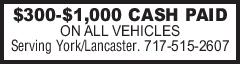 $300-$1,000 CASH PAID ON ALL VEHICLE