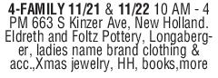 4-FAMILY 11/21 & 11/22 10 AM – 4 PM