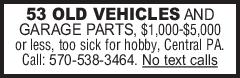 53 OLD VEHICLES AND GARAGE PARTS, $1