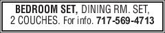 BEDROOM SET, DINING RM. SET, 2 COUCH