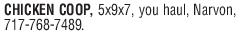 CHICKEN COOP, 5x9x7, you haul, Narvo