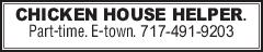 CHICKEN HOUSE HELPER. Part-time. E-t