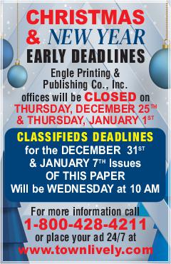 CHRISTMAS & NEW YEAR EARLY DEADLINES