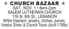 CHURCH BAZAAR SAT., NOV. 1 • 8am-2pm