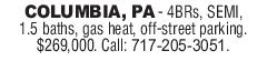 COLUMBIA, PA – 4BRs, SEMI, 1.5 baths