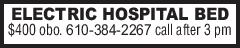 ELECTRIC HOSPITAL BED $400 obo. 610-