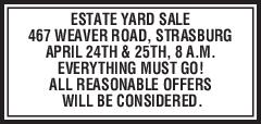 ESTATE YARD SALE 467 WEAVER ROAD, ST