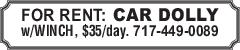 FOR RENT: CAR DOLLY w/WINCH, $35/day