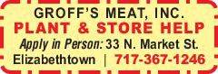 GROFFS MEAT, INC. PLANT & STORE HELP