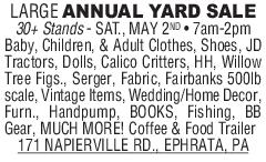LARGE ANNUAL YARD SALE 30+ Stands –