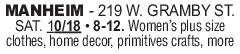 MANHEIM – 219 W. GRAMBY ST. SAT. 10/