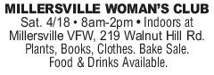 MILLERSVILLE WOMANS CLUB Sat. 4/18 •
