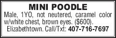 MINI POODLE Male, 1YO, not neutered,