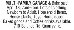 MULTI-FAMILY GARAGE & Bake sale. Apr