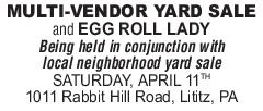MULTI-VENDOR YARD SALE and EGG ROLL