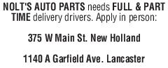 NOLT’S AUTO PARTS needs FULL & PART