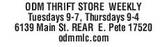ODM THRIFT STORE WEEKLY Tuesdays 9-7
