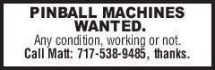PINBALL MACHINES WANTED. Any conditi