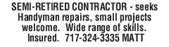 SEMI-RETIRED CONTRACTOR – seeks Hand