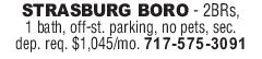 STRASBURG BORO – 2BRs, 1 bath, off-s