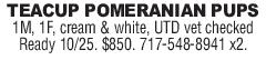 TEACUP POMERANIAN PUPS 1M, 1F, cream