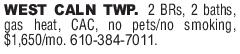 WEST CALN TWP. 2 BRs, 2 baths, gas h