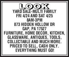 YARD SALE-MULTI FAMILY FRI 4/24 AND